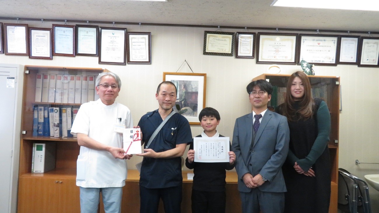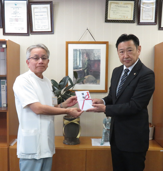 このたび、ミカド電子株式会社様(埼玉県深谷市)が発行する「ぐんぎんSDGs私募債」の発行手数料の一部について、私募債の受託者である株式会社群馬銀行様から当センターへ御寄附をいただきました。浜島院長から、感謝の意を表するとともに感謝状をお渡ししました。