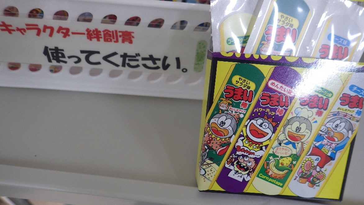 本物と同じで様々な種類のうまい棒のイラストが描かれていて楽しみながら選べます。処置後の頑張りをこの絆創膏を使って認めていきたいです。