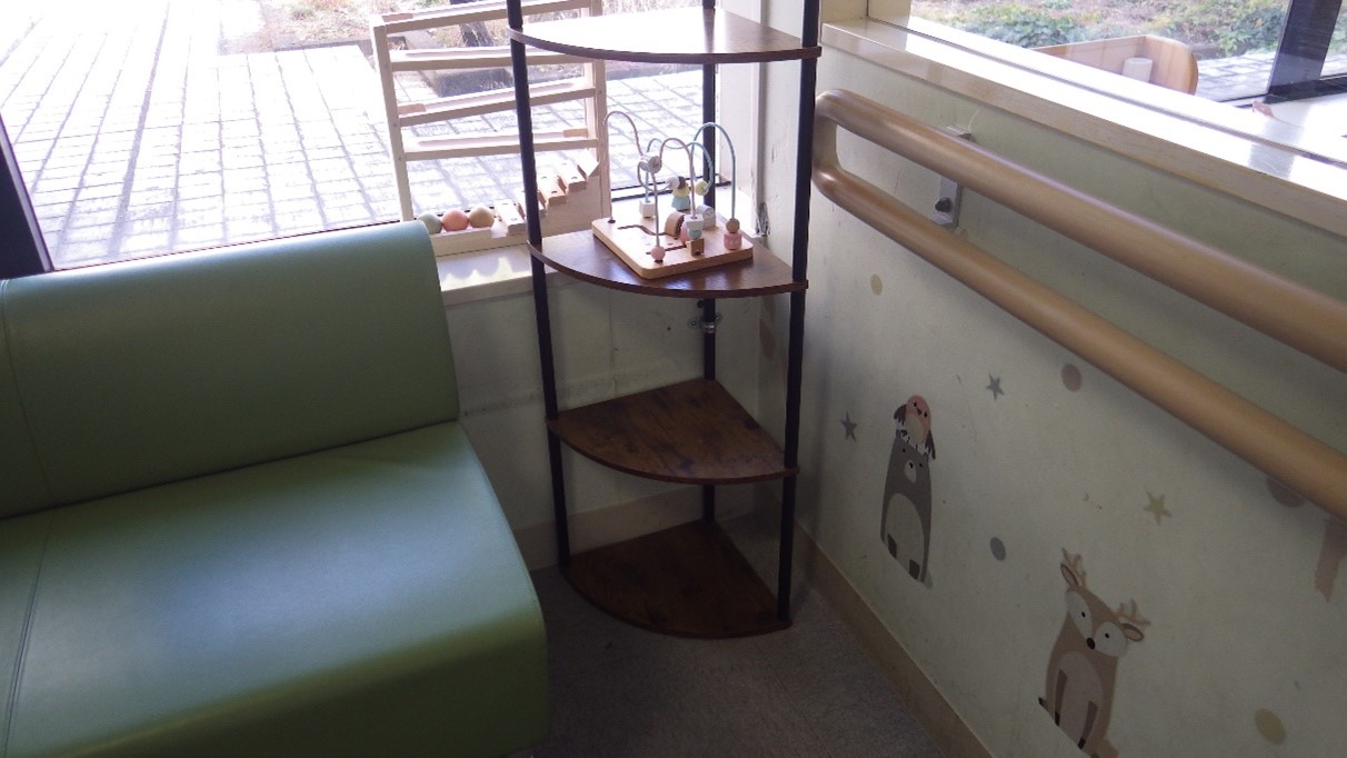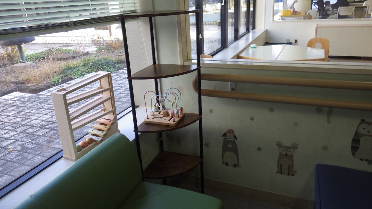 入院をする子供たちが退屈しないように、入院前の一時待機所に設置させていただきました。早速、子供たちが興味深かそうに音を鳴らしたり、ボールを握りしめたりして遊んでいました。