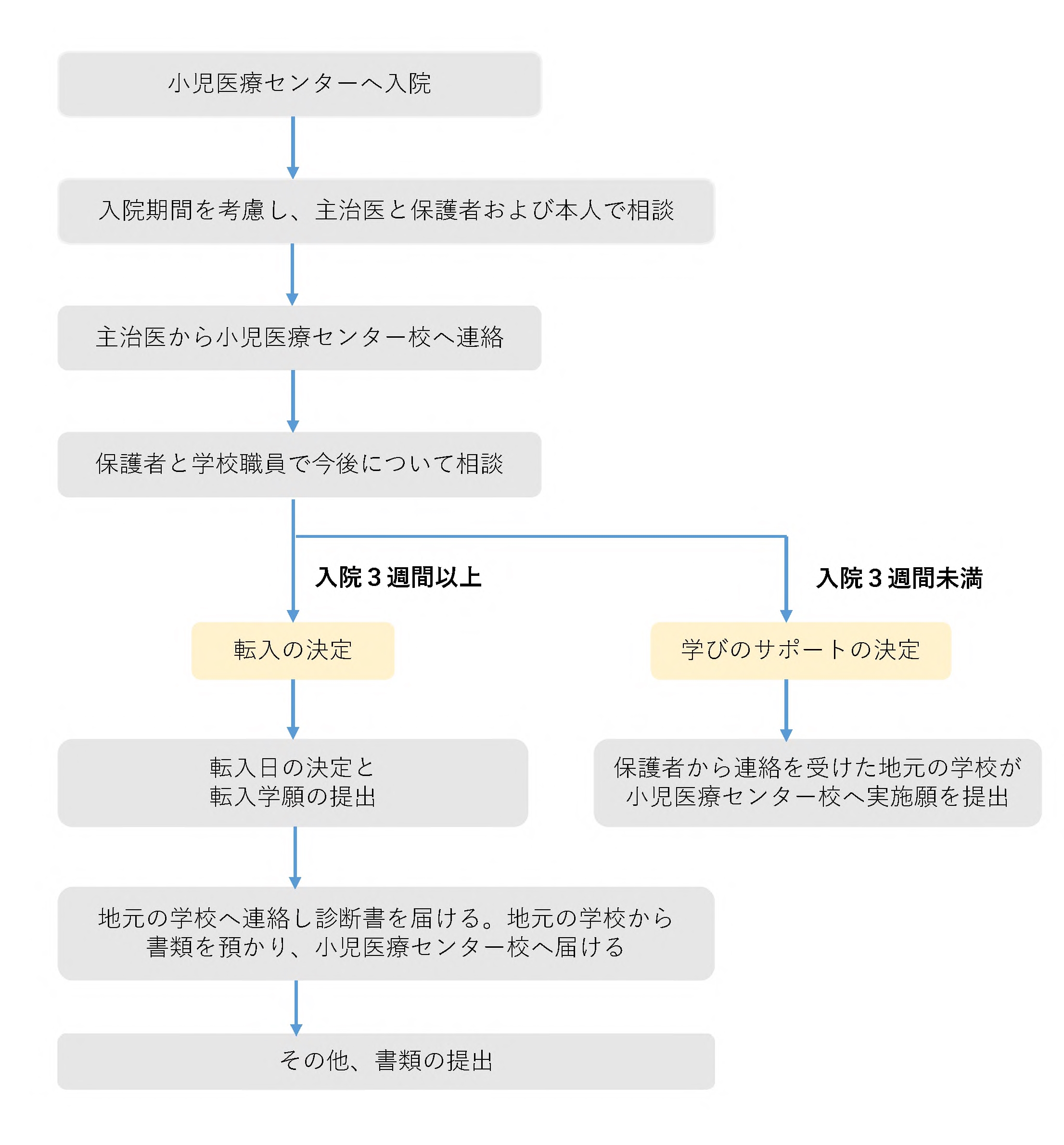 転入または学びのサポートのご希望がある場合は、まず主治医にご相談ください。その後、学校に来て諸手続きを取っていただくことになります。